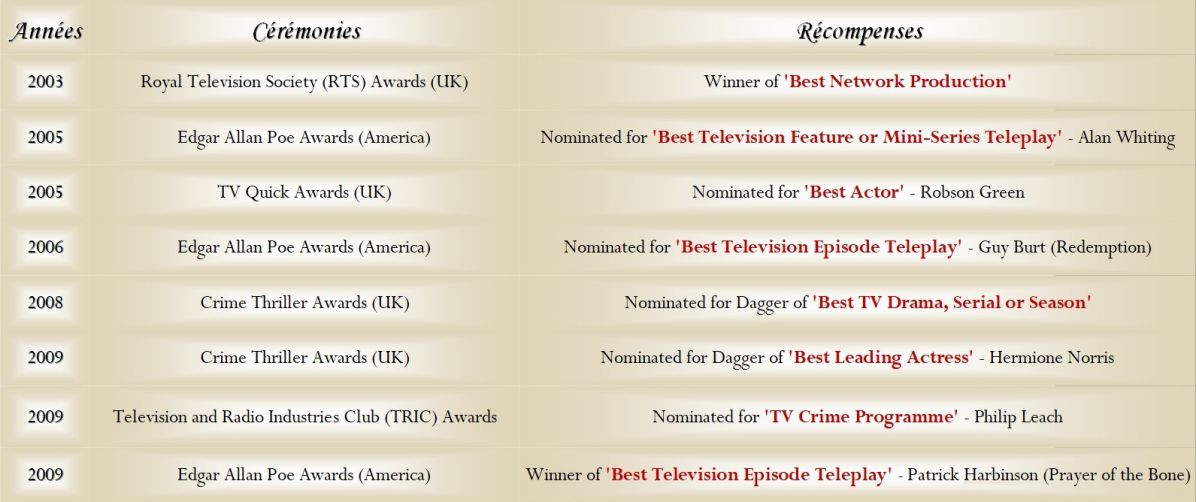 "En dépit du fait que ITV ne nous ait jamais donné un créneau régulier, la série a été diffusée à divers moments dans l'année, des soirs différents et au moins dans trois formats de durée différente, nous avons toujours réalisé quelques-unes des plus hautes audiences, toutes fictions confondues de ITV. Nous avons toujours été le spectacle le plus regardé sur n'importe quelle chaîne. Selon les chiffres officiels, plus de 90% de nos téléspectateurs considèrent le spectacle comme un rendez-vous télévisé, ils ne se contentent pas de regarder parce qu'il n'y a rien d'autre. La série est visible sur 120 chaînes dans le monde entier. Elle a gagné des prix, et vient juste d'être sélectionnée pour un Edgar pour les Mystery Writers of America."