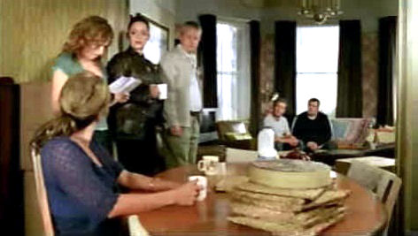 Tate a décidé de tromper l'ennemi en maquillant une mise en scène. A l'extérieur les deux hommes de Sweeney sont persuadés que Tate les a effectivement abattus. Ils viennent s'en assurer dans la caravane où les corps de Colin et Howard gisent à terre du sang sur leur visage - en réalité du ketchup. L'un d'eux tue alors son complice et s'apprête à faire de même avec Tate en lui disant : " Après tout, c'est vous qui baisez la femme du gros lard... "