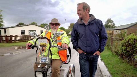 Robson part ensuite à la rencontre d'une communauté très particulière à Humberston Fitties qui vit dans un ancien camp militaire de la Première Guerre mondiale réhabilité en un parc de chalets construits sur le front de mer.