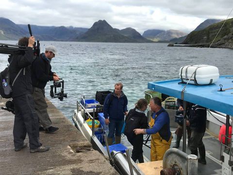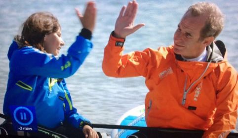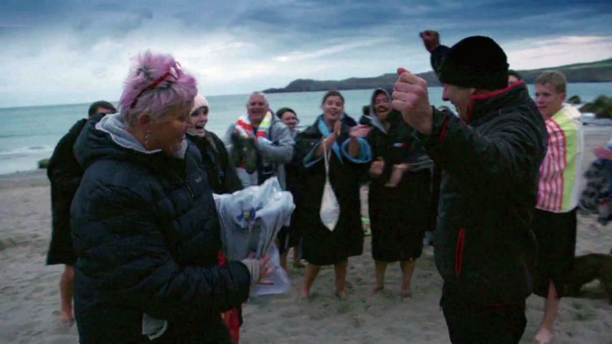 Fan de cette pratique, Robson rejoint le groupe à la tombée du jour pour une baignade tonifiante et amusante dans l'eau à 15°C : "I love cold-water swimming. That was fun." Sian offre le tee shirt et le badge faisant officiellement de Robson le 71ème membre des "Bluebells".