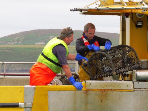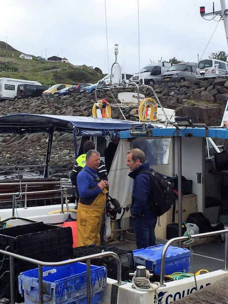Robson monte à bord pour retirer quelques beaux spécimens de homards dans ses filets qui seront vendus ensuite dans les restaurants locaux.