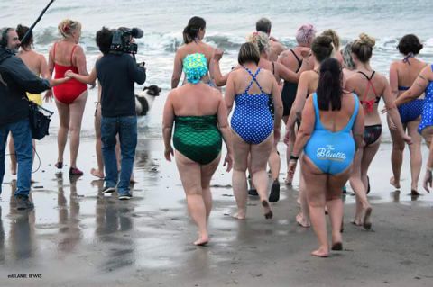 Sian a créé les "Bluetits and Bells" avec une amie en 2014. Deux à l'origine, le groupe de nageuses adeptes des bains dans l'eau glaciale de la mer Celtique, compte maintenant 70 membres, dont quelques hommes.