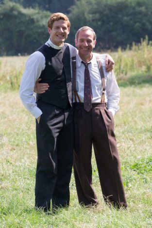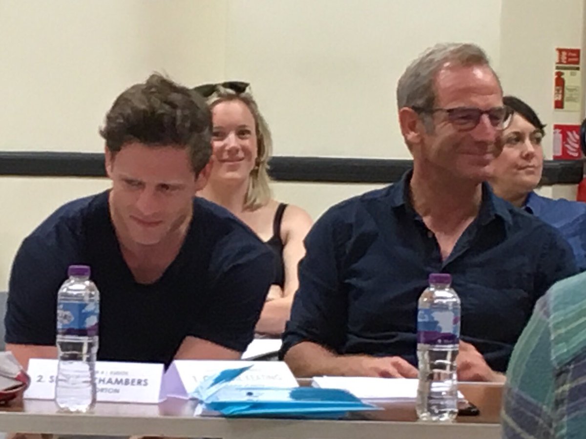 Robson, James et des fans et en compagnie de l'acteur Joseph Millson qui joue Mr Pope dans l'épisode 6.