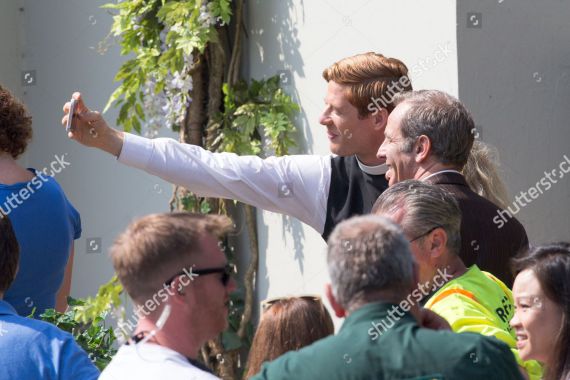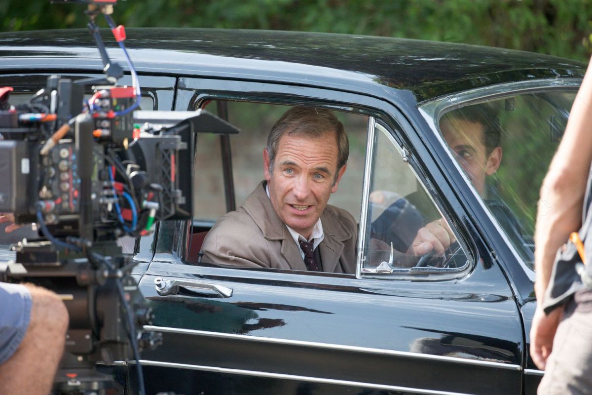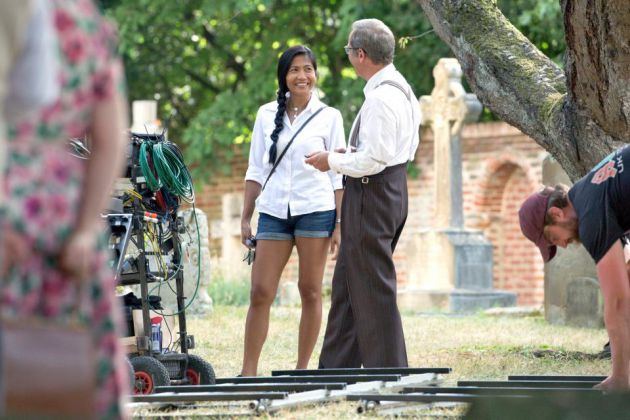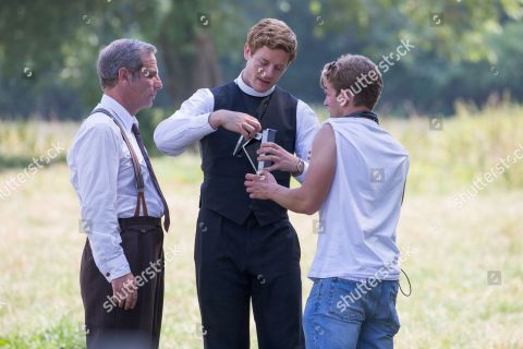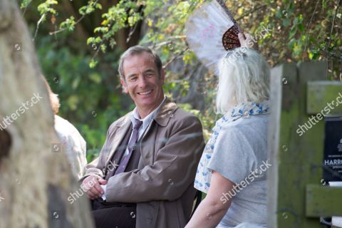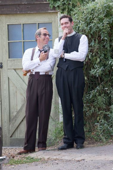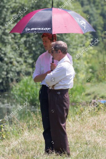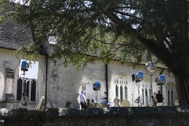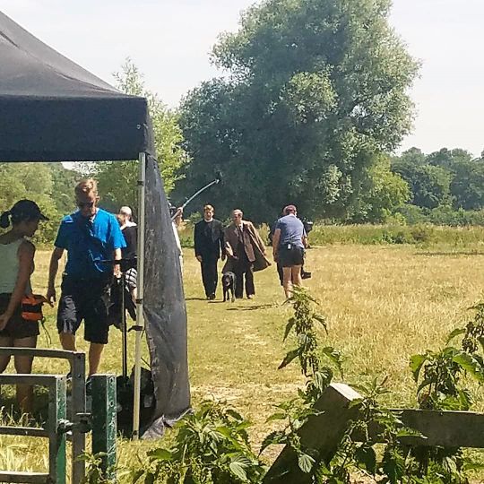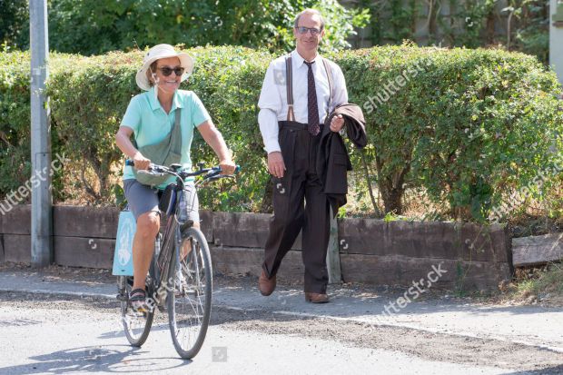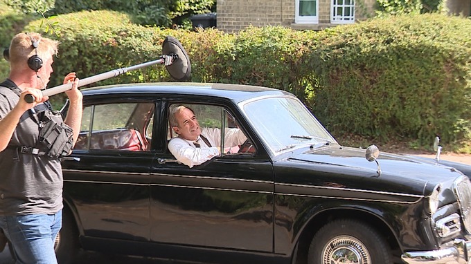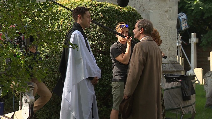 Vidéo montrant toute l'équipe en train de tourner dans le village de Grantchester, Cambridgeshire, le 4 Septembre 2018, sous un soleil exceptionnel. Crédit: ITV News Anglia