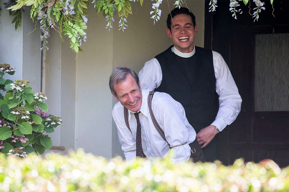 ... et retrouve le sourire avec son nouveau partenaire contre le crime, le révérend Will Davenport. Tom Brittney, 27 ans, 1 m 88, a commencé le tournage pour la première fois avec sa co-star le 6 août 2018. Et déjà une joyeuse complicité s'installe entre entre eux à en juger par leurs nombreux fous rires !