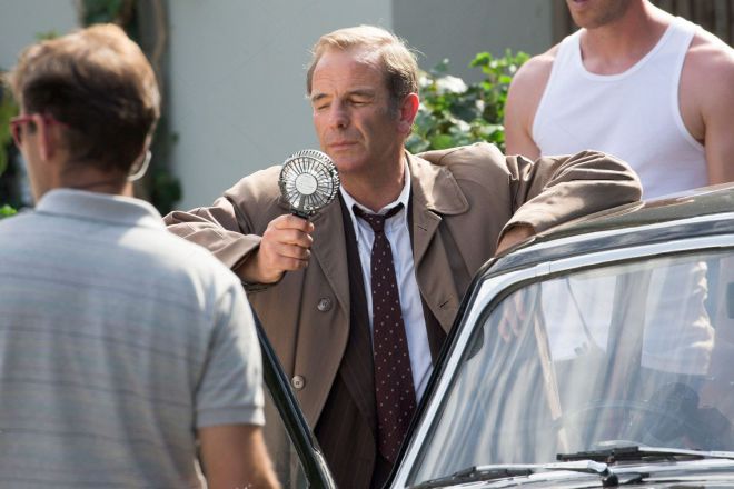 Lors du tournage ce 7 Août, Robson a beaucoup de mal à supporter la canicule sous les épaisseurs de son costume trois pièces en laine, trench coat et fedoraa. Pour se ventiler, il utilise un petit ventilateur à main ou son chapeau. À un moment, il lutte difficilement et une assistante lui apporte une serviette fraiche sur la nuque. Dure journée !