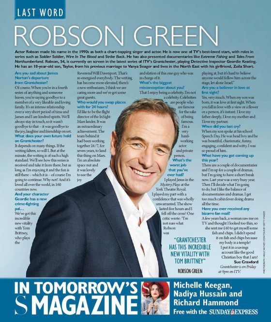 These days Robson Green finds himself spending a lot of time looking upwards. The star of ITV drama Grantchester, the adventurous host of Extreme Fishing and the man who once crooned on stage for Princess Diana is not looking for divine inspiration. Rather, he is on his guard against advancing weather systems. ‘I’m obsessed,’ he says. ‘I’ve got an app on my phone that tells me when storm fronts are on their way. And they all have names these days, like they’re your mate. I was working in Australia last year and got fixated with the fact that they had the first-ever transgender weather front. It started off as Storm Derek, then transitioned to Diane. Or was it the other way around?’