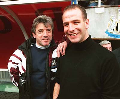 En février 1992, Keegan devient entraîneur de l'équipe de Newcastle United qui remporta le titre de 2ème division anglaise et fut promu en Premier League dès sa première saison. Ci-contre: Robson et Kevin Keegan.