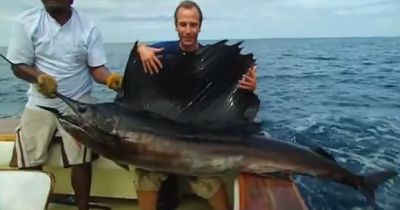 "Avant le tournage, le plus gros poisson que j'avais jamais pêché était un saumon de 15 livres (7 kilos). Au final j'ai pris un marlin bleu de 600 livres (272 kg) aux Açores et accroché un espadon de 120 livres (55 kg) qui m'a presque arraché les bras ! J'ai aussi attrapé un thon de 200 livres (91 kg) dont je me suis délecté quelques minutes plus tard en sushis ! "