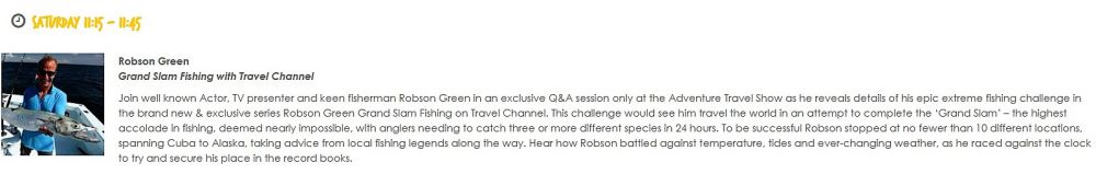 De nombreuses conférence sont proposées dans quatre théâtres selon les thèmes. Ainsi, Robson Green présentait sa nouvelle série dans l'Adventure Auditorium le Samedi 21 Janvier où il a été interviewé par Dave Cornthwaite (photo ci-dessous).