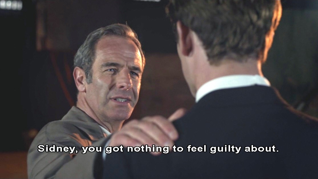 Il lui reproche de jouer à Dieu et d'entraver la justice. Reprenant les paroles de Geordie, Sidney rétorque que chacun fasse son travail, puis lui tourne les talons et le plante là. Cette fois, le point de rupture semble atteint.