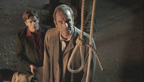 Sur place, tous deux observent la scène et apparemment le positionnement du corps intrigue Sidney. Reggie aurait dû faire face aux chevaux, et dans ce cas le tabouret aurait dû basculer dans l'autre sens. A-t-il été poussé délibérément ? Quelqu'un voulait-il maquiller un meurtre en suicide ?