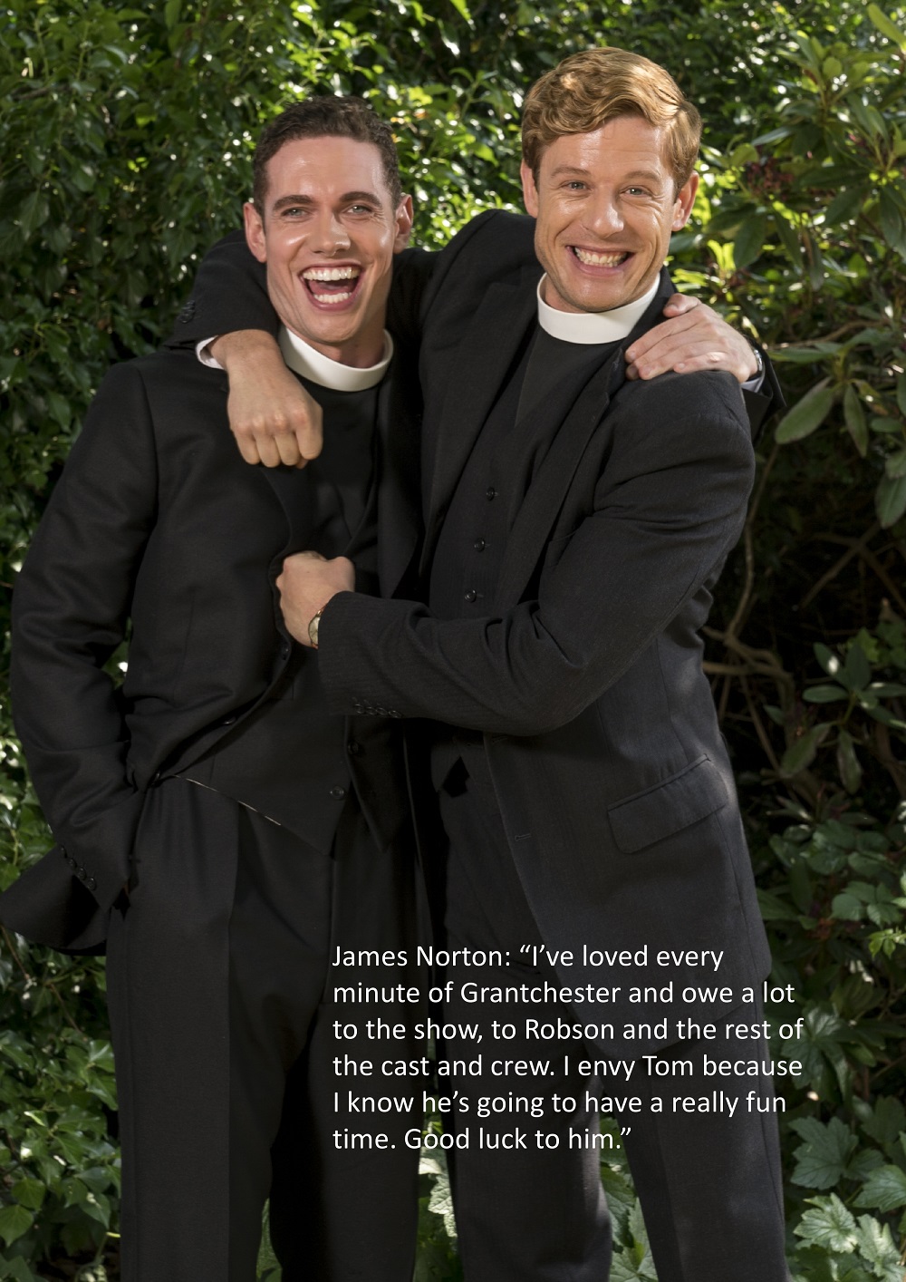 I couldn’t be happier to be handing the dog collar on to Tom who is going to be great. I know Tom is going to have a great time. He is oozing with charisma, horribly attractive with the best teeth in the industry. And, of course, I will continue to watch Grantchester as a viewer. It’s been a real joy to play Sidney. I’ve loved every minute of Grantchester and owe a lot to the show, to Robson and the rest of the cast and crew. I envy Tom because I know he’s going to have a really fun time. Good luck to him.