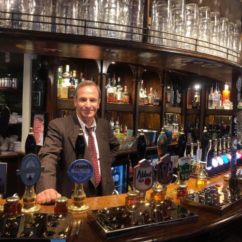 Tournée des pubs pour Robson après le tournage ! The Grapes d'Hexham, St Mary's Chare, le 7 septembre et derrière le bar de The Eagle à Cambridge.