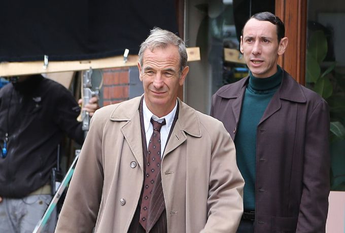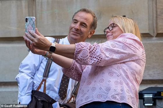 Ce mardi 10 août 2021, Robson Green, 56 ans, a retrouvé sa femme à l'écran Kacey Ainsworth, 52 ans, sur le tournage de Grantchester, à Cambridge. L'ancienne popstar et l'ancienne actrice d'EastEnders – qui interprète Cathy Keating – ont ouvert grand les bras alors qu'ils s'embrassaient chaleureusement. Lors du tournage de différentes scènes, l'acteur portait un costume marron à fines rayures et un pardessus de couleur camel.