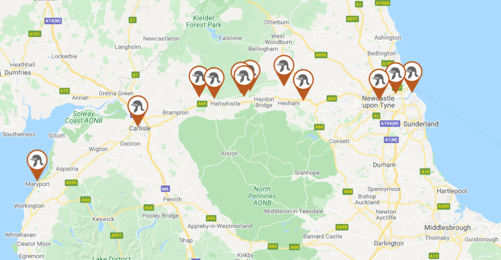 Parmi ces vestiges, le fort de Vindolanda, situé à environ 53 kilomètres à l'ouest de la colonie romaine de Pons Aelius, aujourd'hui Newcastle, et Housesteads qui couvrait une superficie de 2 hectares presque entièrement fouillés.