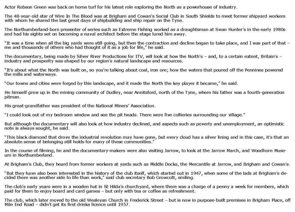 TV STAR EXPLORES REGION’S INDUSTRIAL ROOTS - 01/02/2013