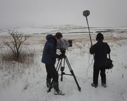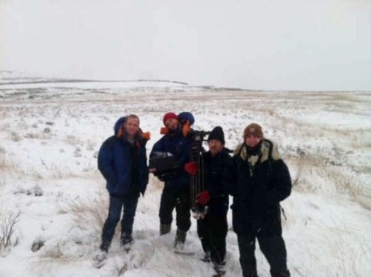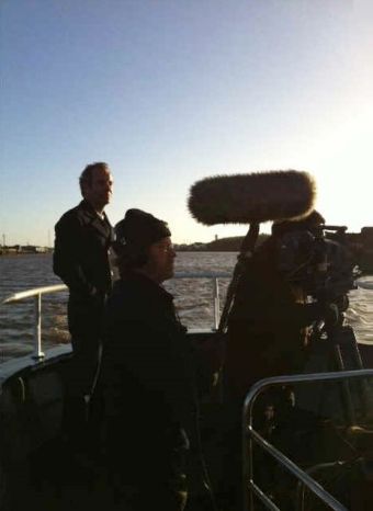 En studio, Robson avec le réalisateur Francis Hanly et l'équipe de post prod.