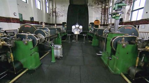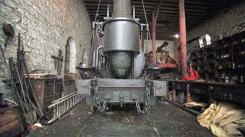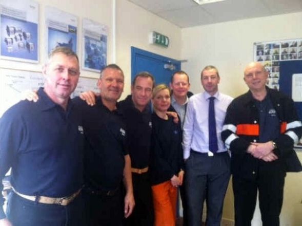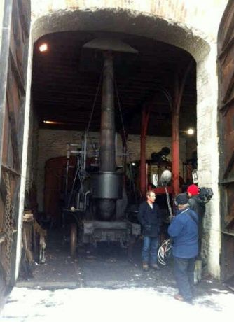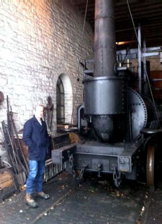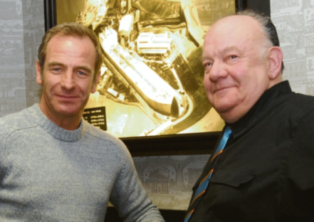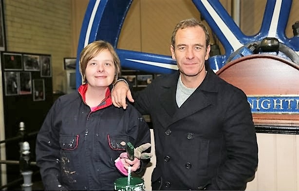 À droite, Robson avec Zoe Renshaw, la présidente du trust Ellenroad Steam Museum, et à gauche, avec le secrétaire du Brigham's Club, Bob Growcott.