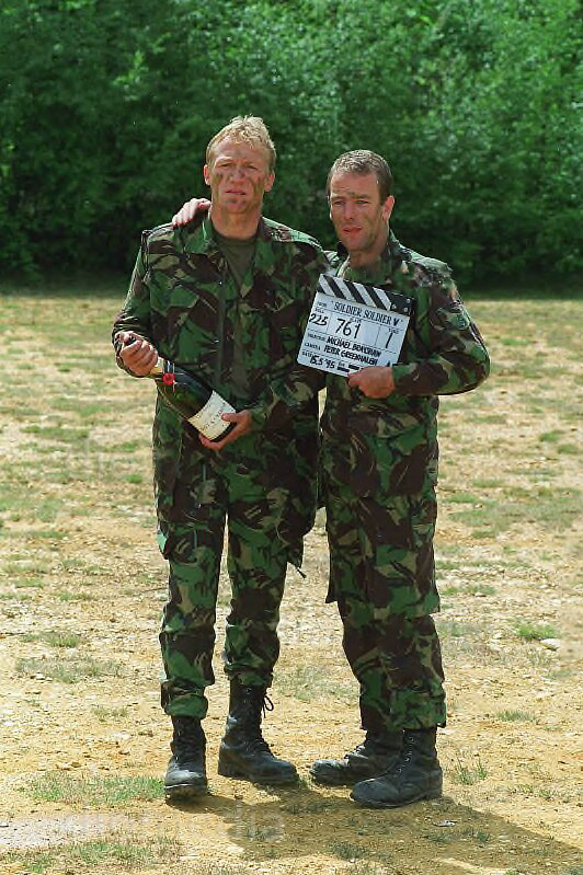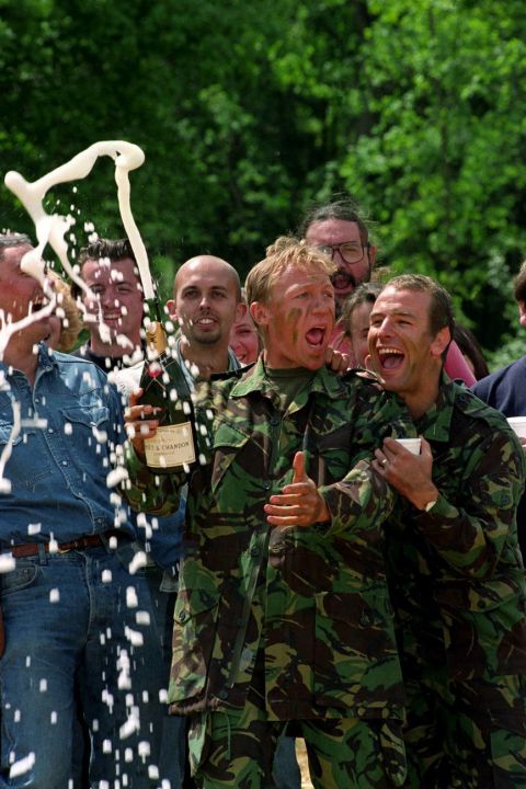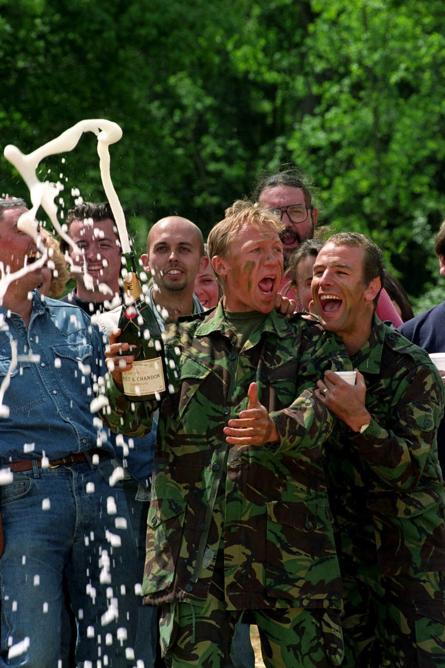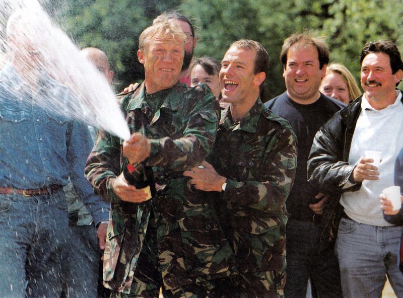 Champagne à flots ! L'équipe de Soldier, Soldier a toujours été persuadée qu'Unchained Melody ferait un succès à tout casser si les garçons l'enregistraient et a vu juste. Pendant le tournage en 1995, les deux acteurs stars sabrent le champagne pour fêter leur Numéro Un des charts avec 1,86 millions d'exemplaires vendus.