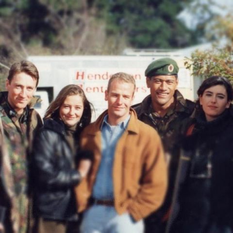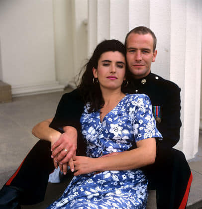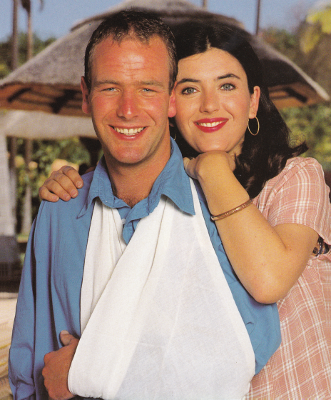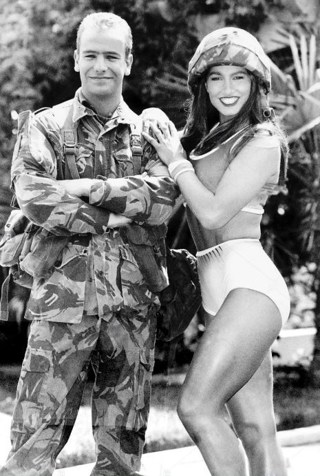Robson en très bonne compagnie ! En service 'exotique' avec le mannequin Jet à Hong Kong en 1992, pour la promotion de Soldier Soldier sur ITV.
