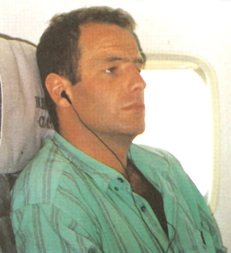 Ci-dessous : Robson, écouteurs aux oreilles, pendant le long vol vers Hong Kong (série 2).