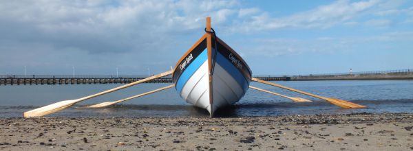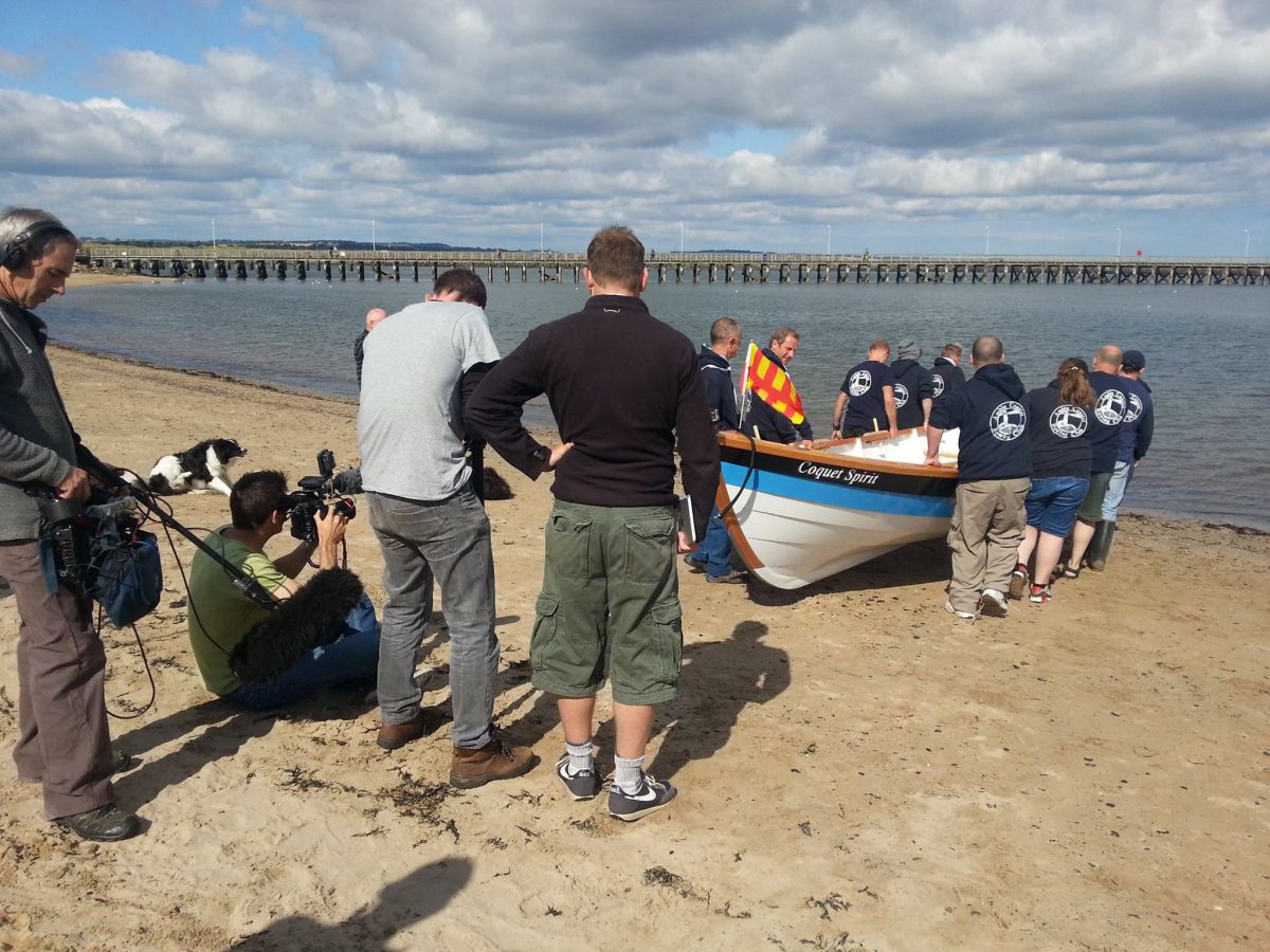 Le 'Coquet Spirit flambant neuf et fin prêt pour le grand jour : l'Amble Coastal Rowing Regatta dans le port d'Amble. (7 Septembre)