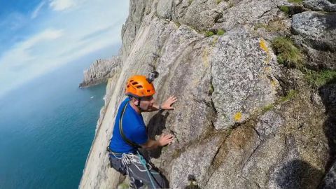 Si Robson est en forme physiquement, il est sujet au vertige... Ainsi la périlleuse et éprouvante ascension lui donne de belles frayeurs !