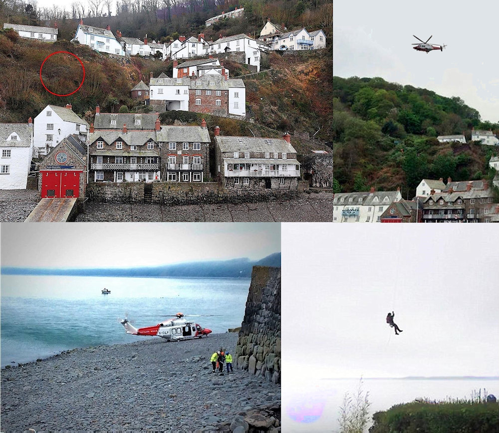 Malgré ses efforts et l'aide d'autres personnes venues le rejoindre, Robson ne peut rien faire et prévient les secours. Les Garde-côtes de Falmouth coordonnent l'intervention avec un hélicoptère et des équipes de cordées spécialisées. La victime, heureusement indemne avec des blessures mineures et en état de choc, est hélitreuillée, puis transportée à l'hôpital.