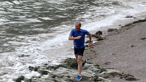Après une nuit sous la tente à la belle étoile sur la plage, Robson s'adonne à son réveil matinal avec footing le long du rivage suivi d'une douche glacée torse nu sous une cascade à flanc de rochers.