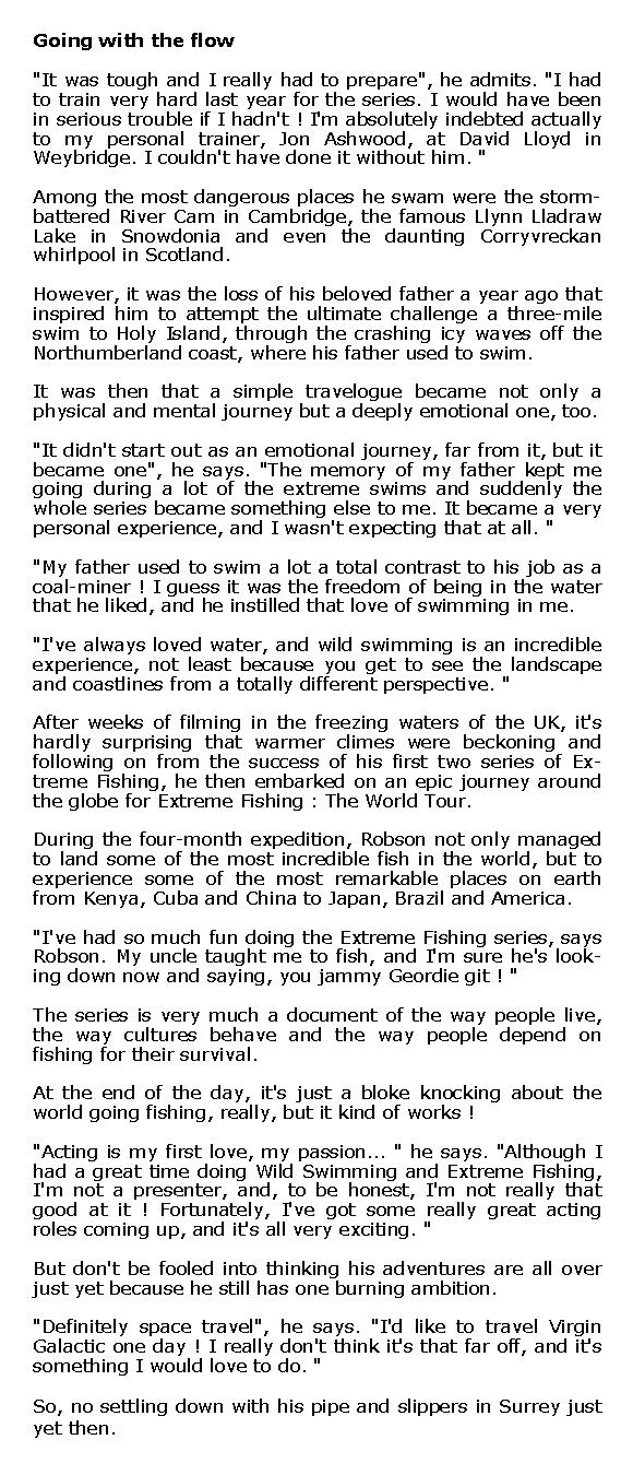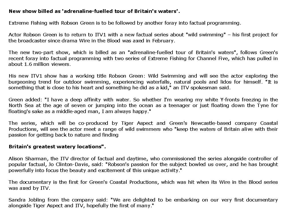 ROBSON GREEN TO RETURN TO ITV WITH SERIES ABOUT 'WILD SWIMMING' - 2 Avril 2009