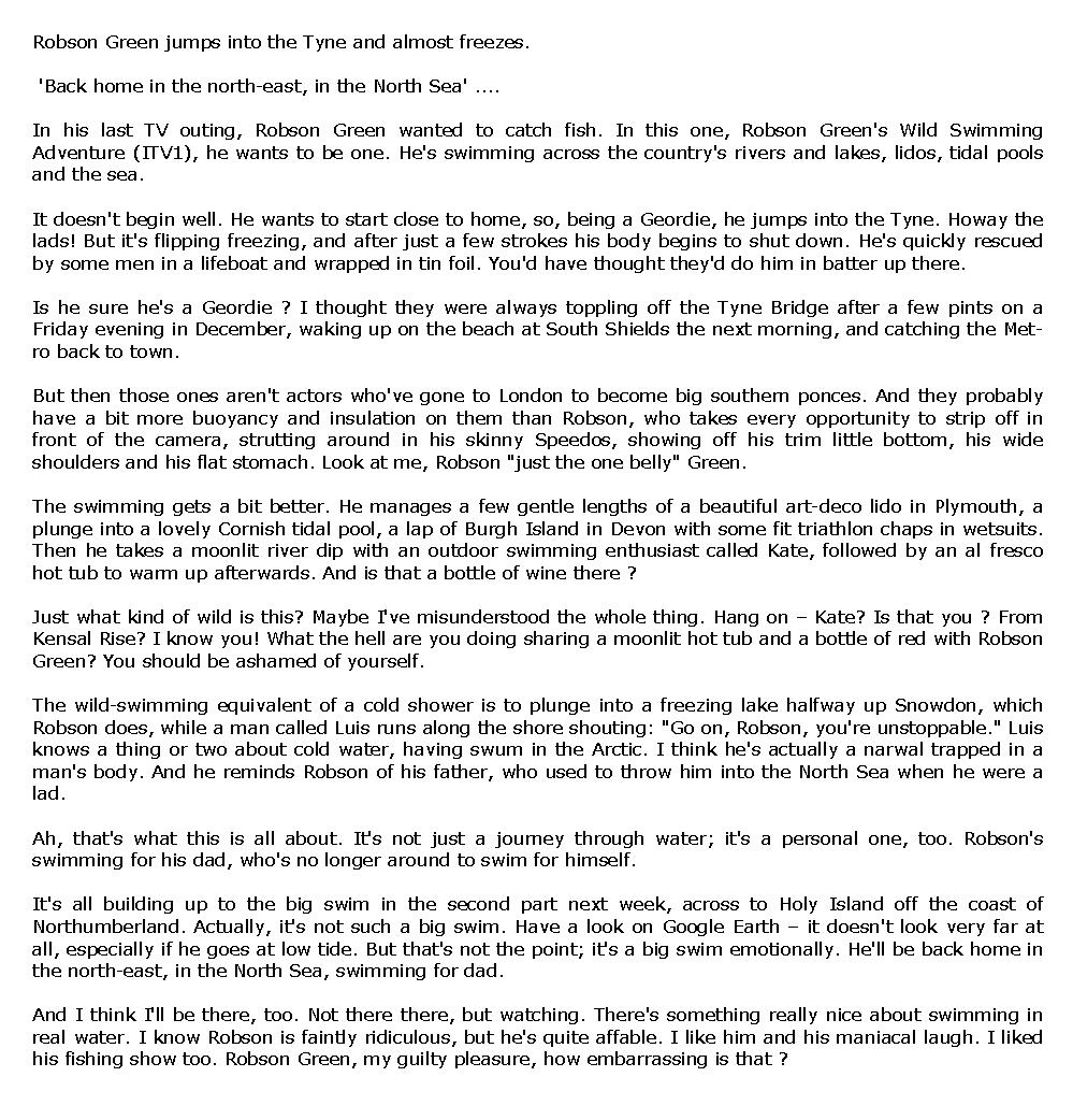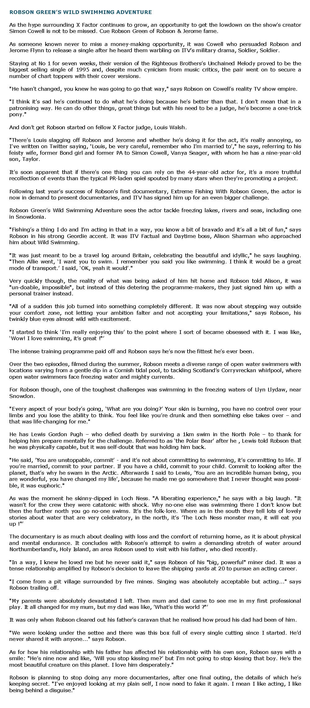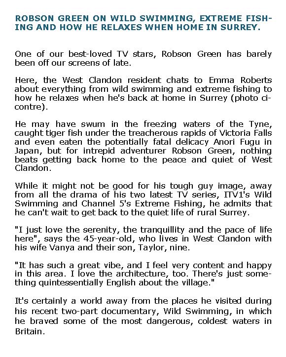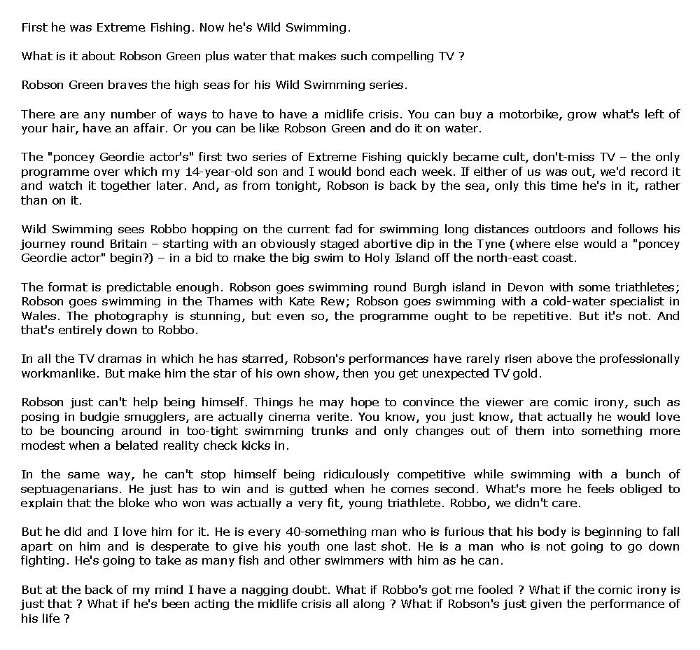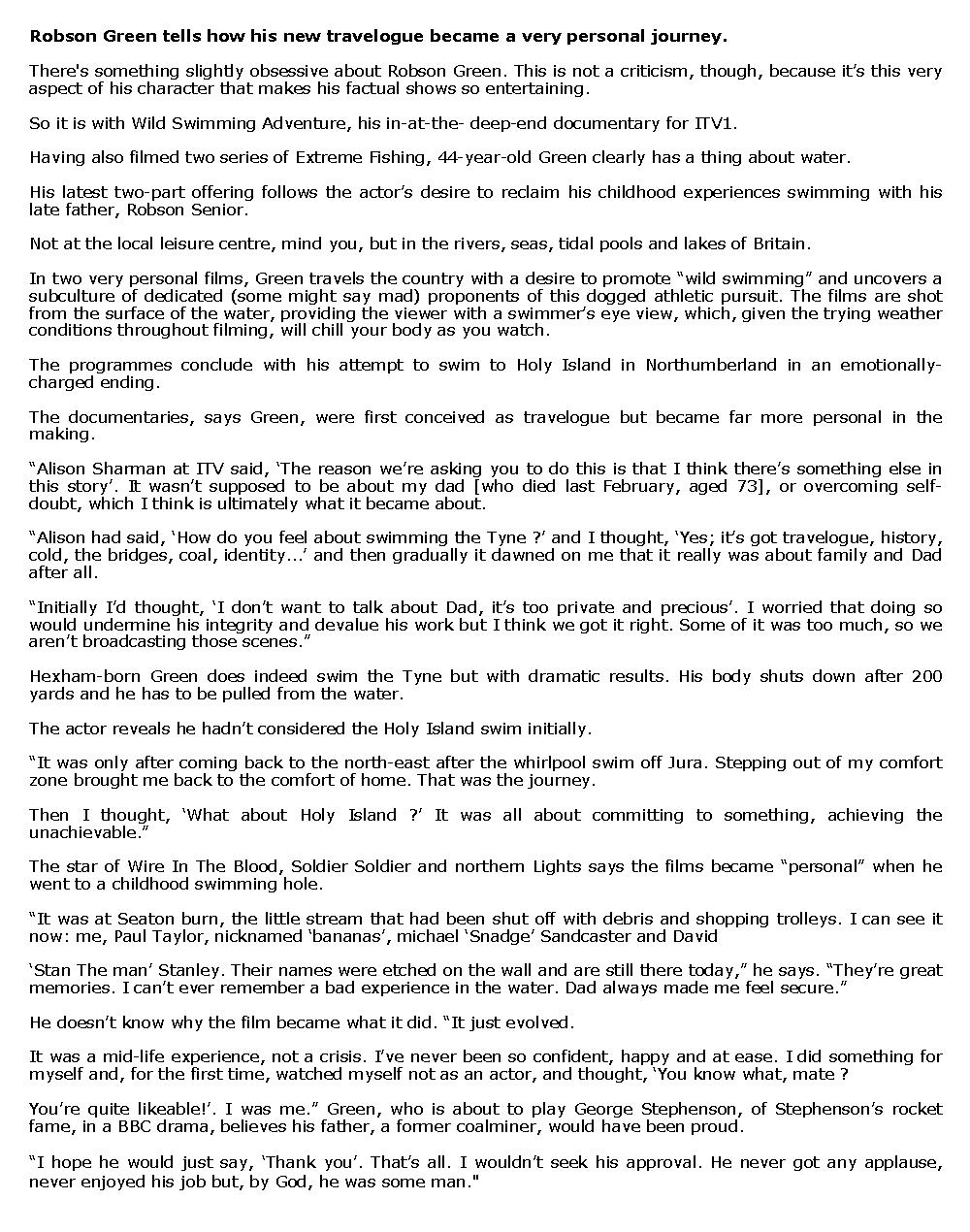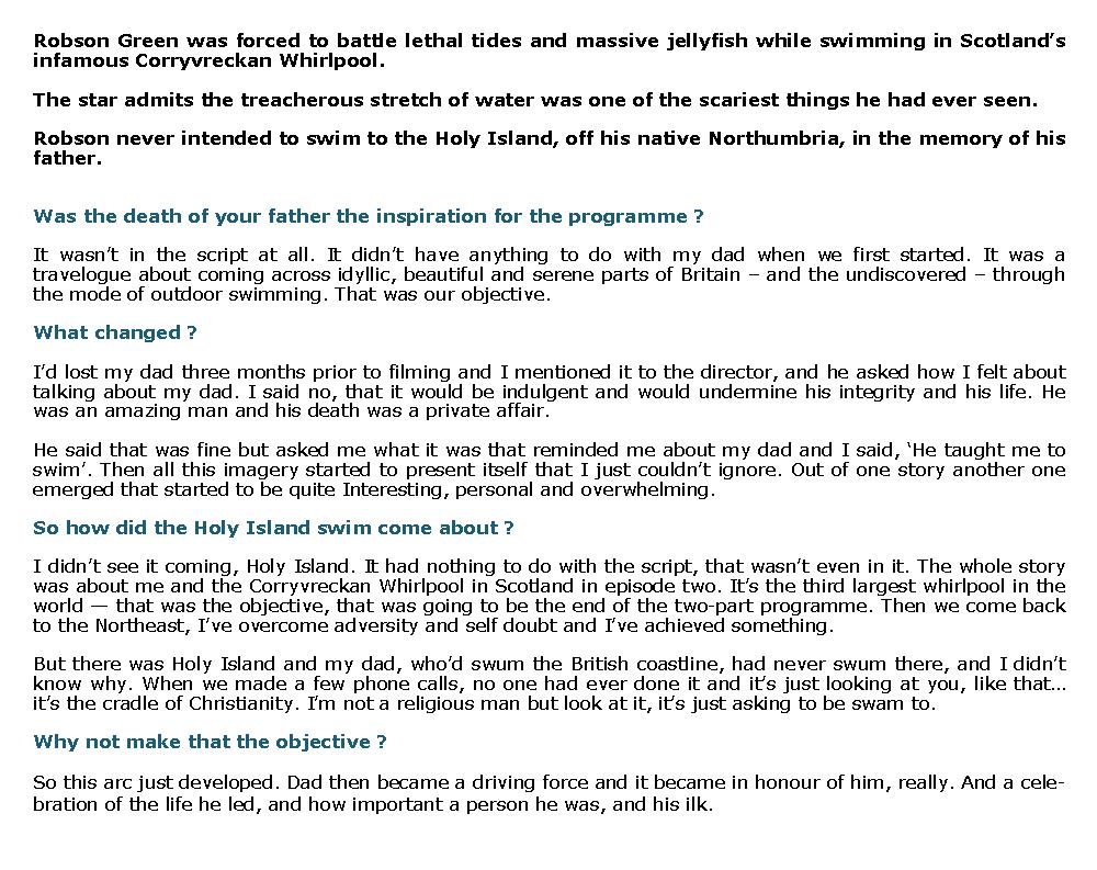 ROBSON GREEN ON WILD SWIMMING AND HOW HE RELAXES – 9 Novembre 2010