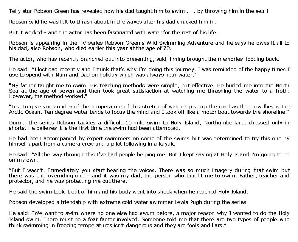 ROBSON GREEN : MY DAD SAID I HAD TO SINK OR SWIM - 29 Novembre 2009