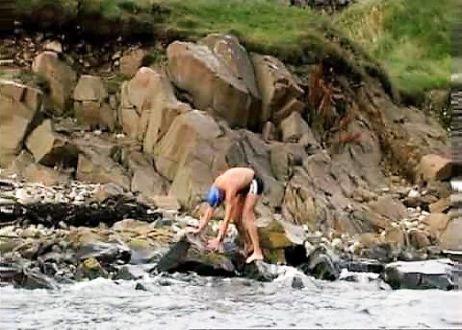 "Holy Island n'était absolument pas dans le script. Au départ le documentaire n'avait rien à voir avec mon père. Cela devait être un récit de voyage à travers les endroits idylliques, merveilleux et sereins de Grande-Bretagne - et méconnus – de la natation en plein air. C'était notre objectif. "