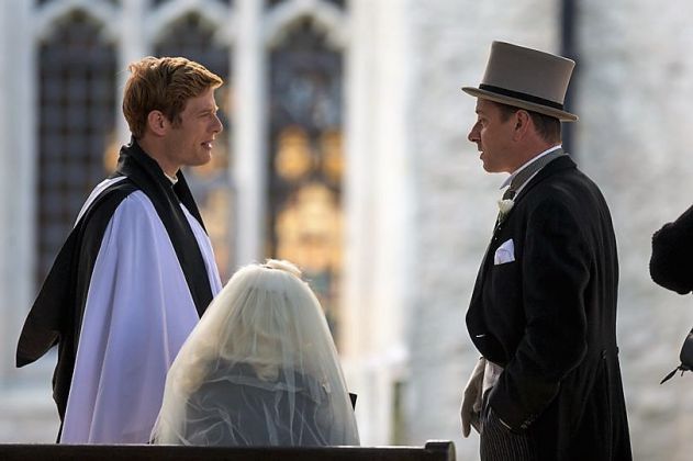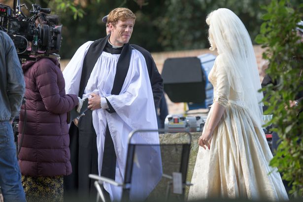 Photos de Robson et James prises le 6 Octobre 2016 pendant la pause dans Trinity Street devant les collèges à Cambridge. Prises de vues de Geordie faisant les boutiques de Noël en famille. Le même jour, d'autres photos montrent James Norton pendant la scène du mariage à l'église du village de Grantchester.