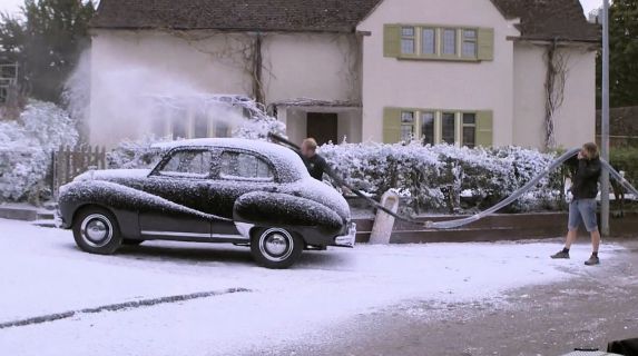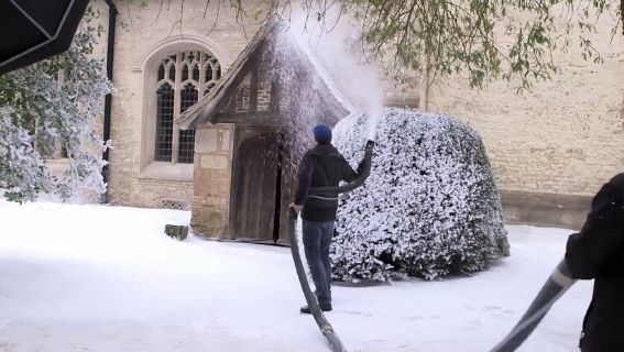 Photos prises le 8 Octobre 2016 sur le plateau couvert de neige à Cambridge. Ce jour-là, l'équipe filme la scène d'une conversation entre Sidney et Geordie dans une rue enneigée où circule une voiture des années 1950.
