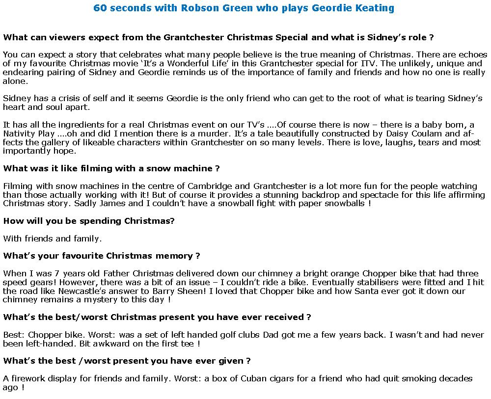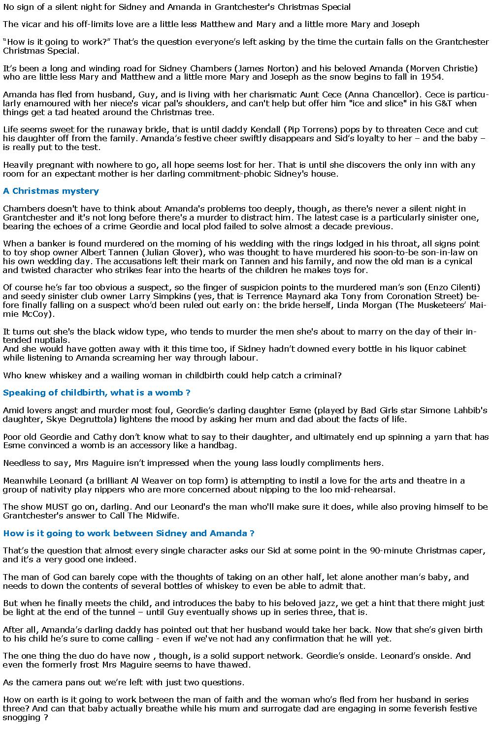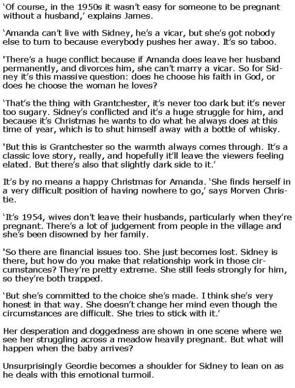 “The Christmas special was a joy, beautifully written, has all the ingredients for the event, and I defy anyone not to cry in the places where you’re meant to cry, laugh where you’re meant to laugh, it’s a joy. This is my happy place, sometimes you just do a job for fun.”