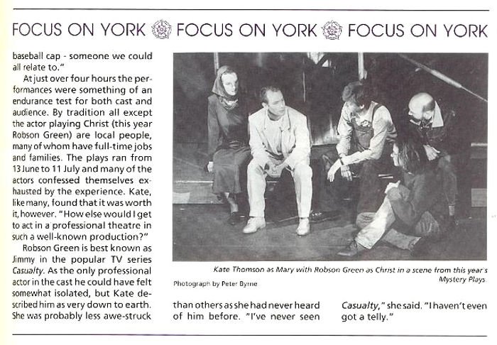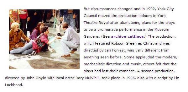 Les pièces se sont ensuite déplacées à l'intérieur de la ville de York, la première fois au Theatre Royal en 1992 puis 1996, et au York Minster à l'occasion du York Millennium Mystery Plays en 2000.