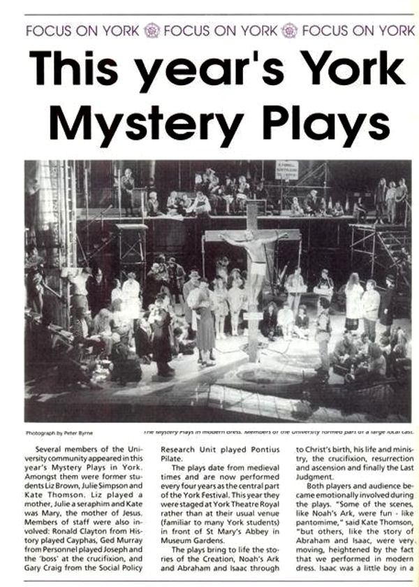 La tradition a été relancée à une plus grande échelle en 1951. Le cycle a été joué pour 26 000 personnes dans les ruines de l'abbaye Sainte-Marie dans les Jardins du Musée à l'occasion du York Festival of the Arts. Dans un souci de lisibilité, le texte a été abrégé et modernisé, une modernisation du texte complet a ensuite été effectuée. Jésus était joué par l'acteur Joseph O'Connor et les autres rôles par des amateurs.